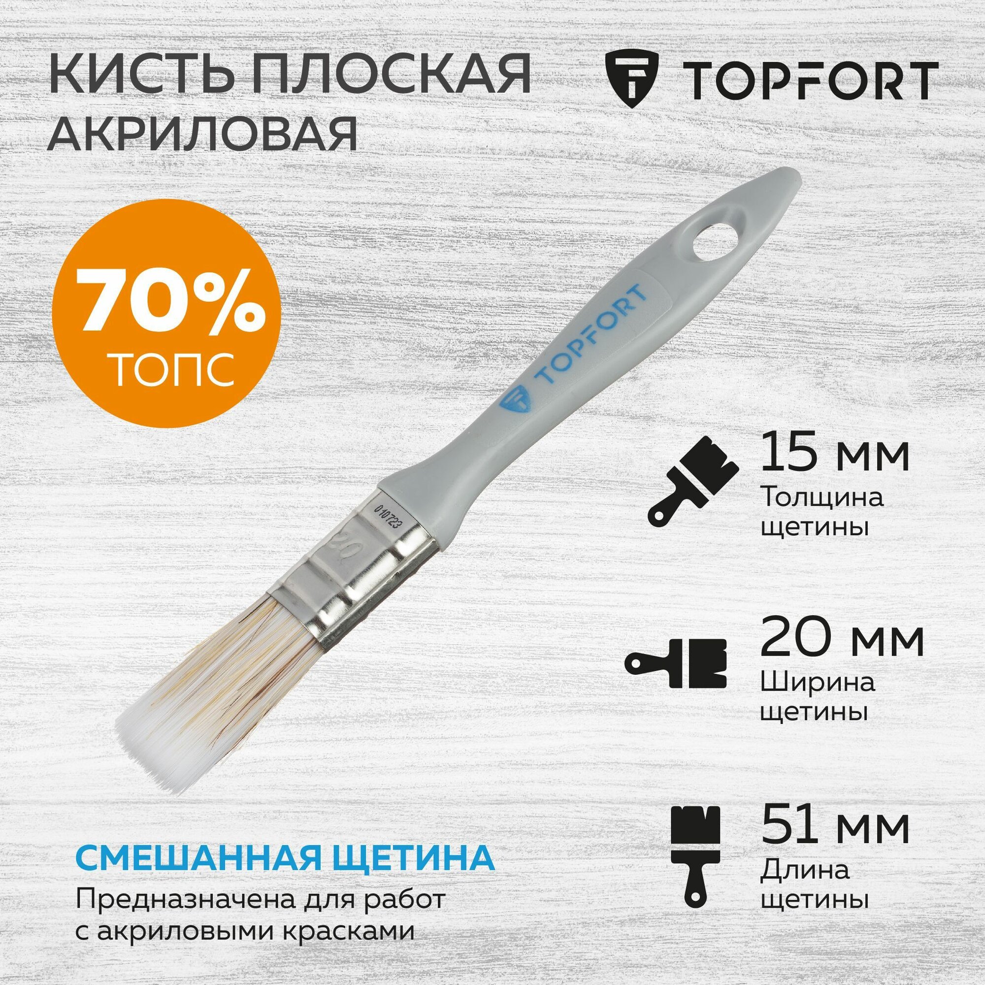 Кисть малярная плоская TOPFORT из смешанной щетины 20 мм информация: