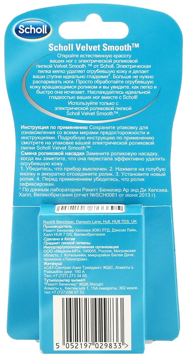Сменная насадка для роликовой пилки для педикюра Scholl Velvet Smooth Diamond Crystals 2 ролика средней жесткости информация: