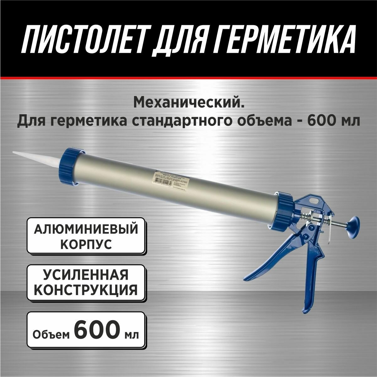Пистолет для герметика металлический корпус туба 600мл информация:
