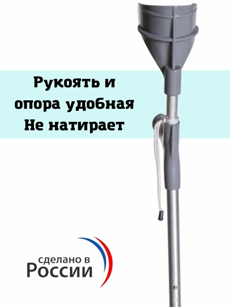 Костыль локтевой регулируемый по высоте с опорой под локоть с УПС антилед для реабилитации, переломов взрослый 1 300 ₽