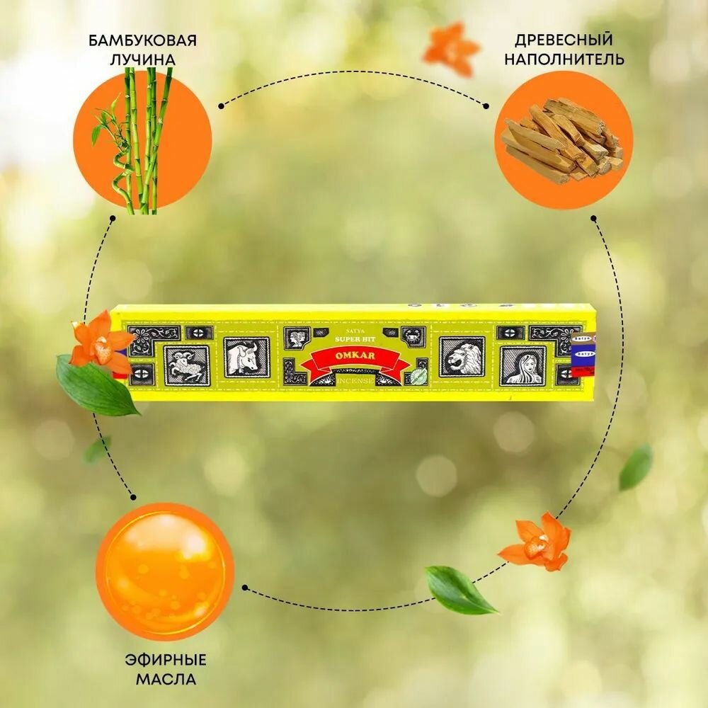 10 цен на Ароматические палочки благовония Satya Сатья Омкара серия Супер Хит Super Hit Series Omkar, 15 гр