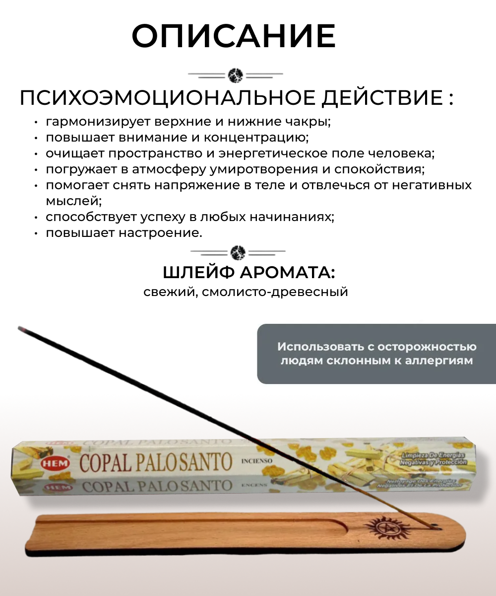 10 цен на HEM Копал Пало Санто - 20 шт, ароматические благовония, палочки, Copal Palo Santo - Hexa ХЕМ