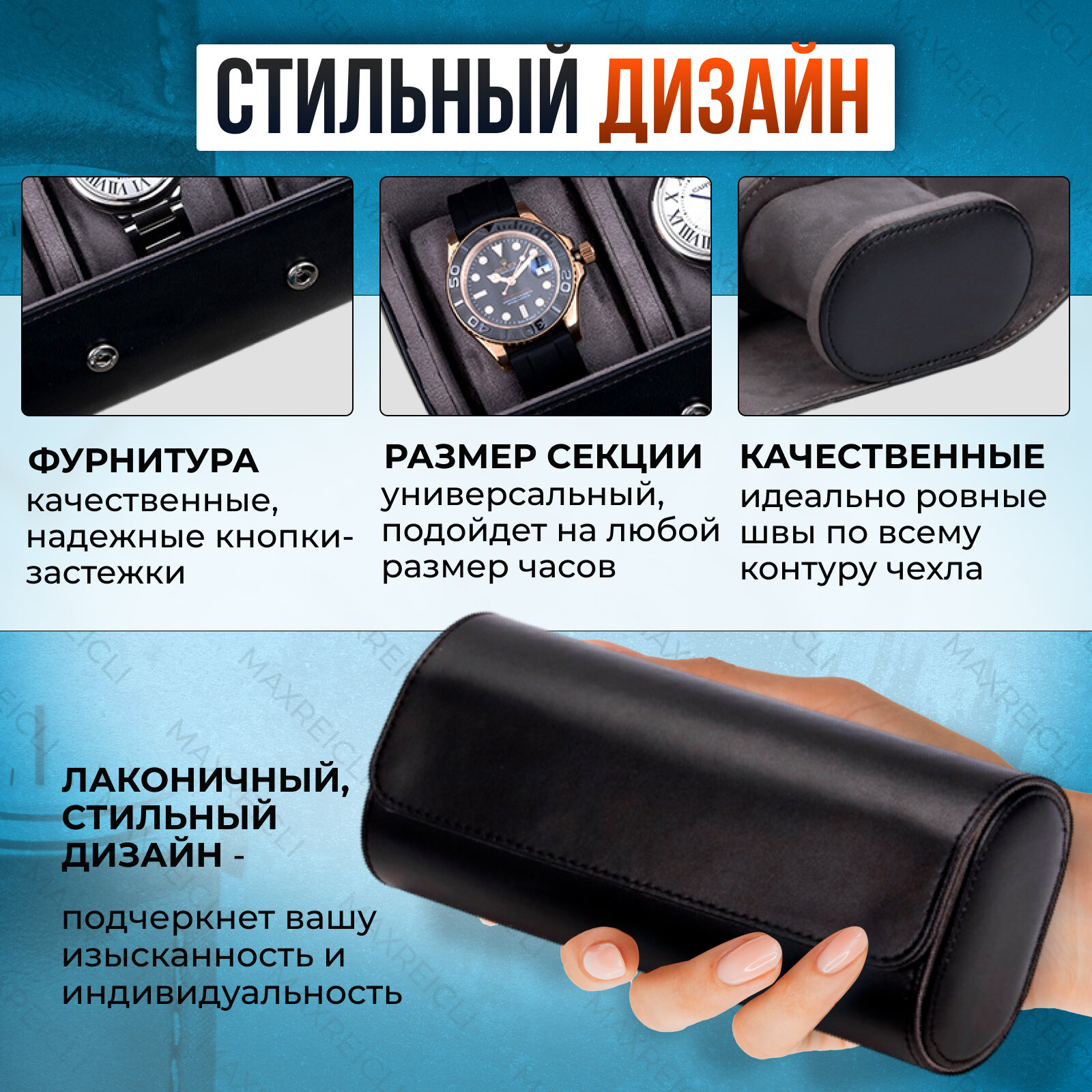 Чехол R-MAX из высококачественной натуральной кожи для хранения часов с 3 съемными отделениями и ручной отделкой, черный информация: