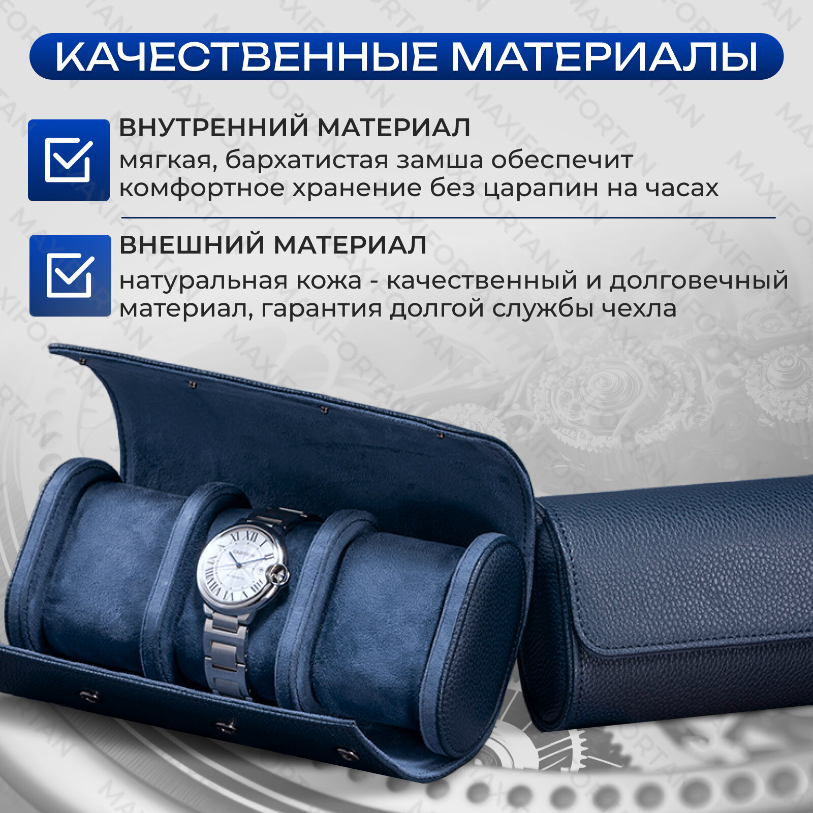 Чехол F-MAX из высококачественной натуральной кожи для хранения часов с 3 съемными отделениями и ручной отделкой, темно-синий информация: