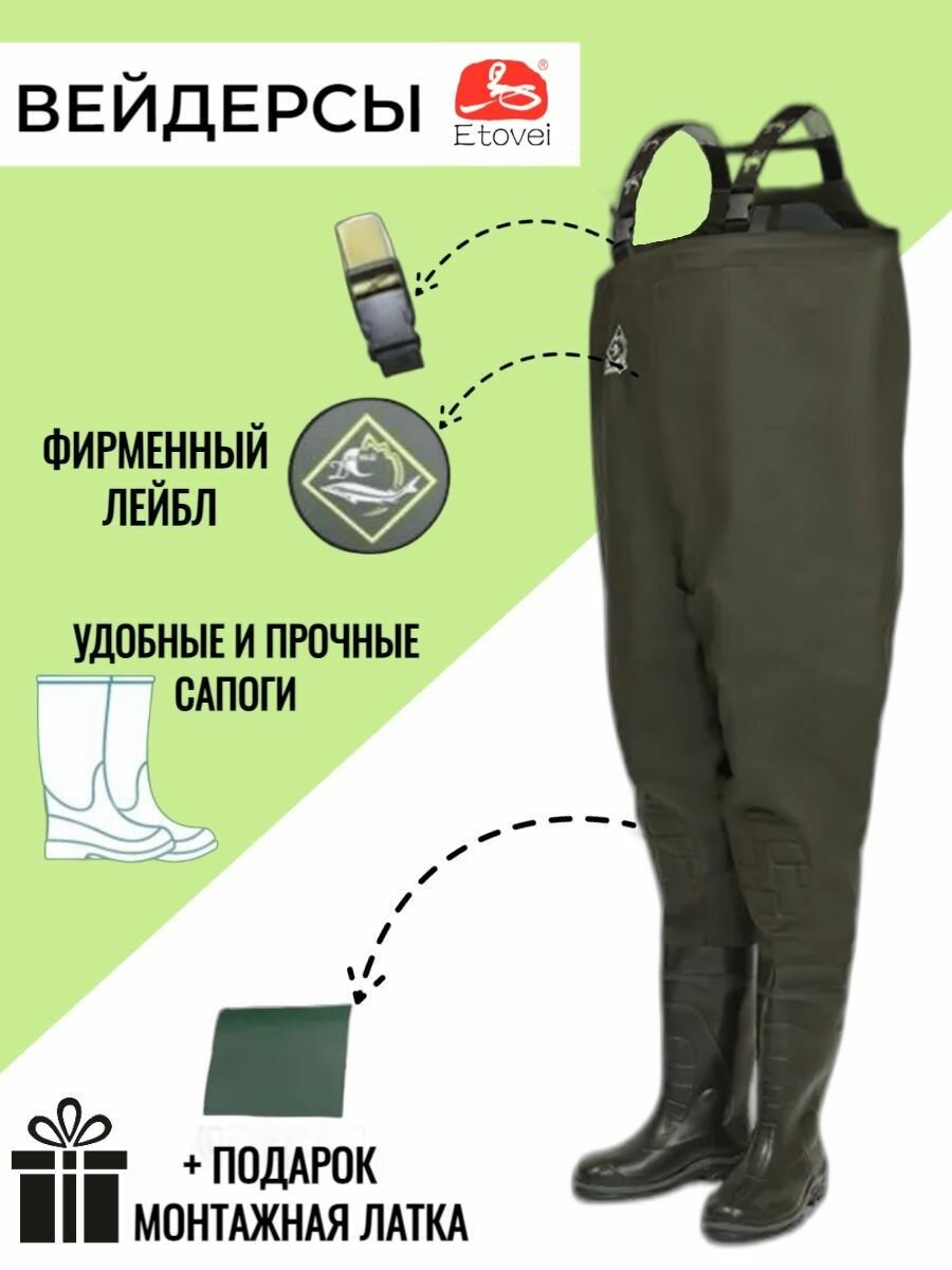 10 цен на Вейдерсы для рыбалки, полукомбинезон рыболовный / высокие (длинные) сапоги 46 размера