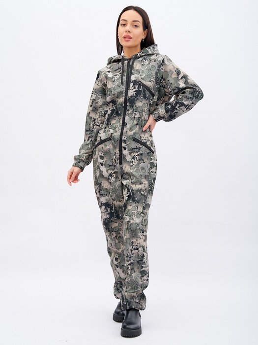 Комбинезон женский костюм на флисе осенний для охоты и рыбалки KATRAN амазонка полофлисовый (серые соты), Размер: 52-54 4 990 ₽