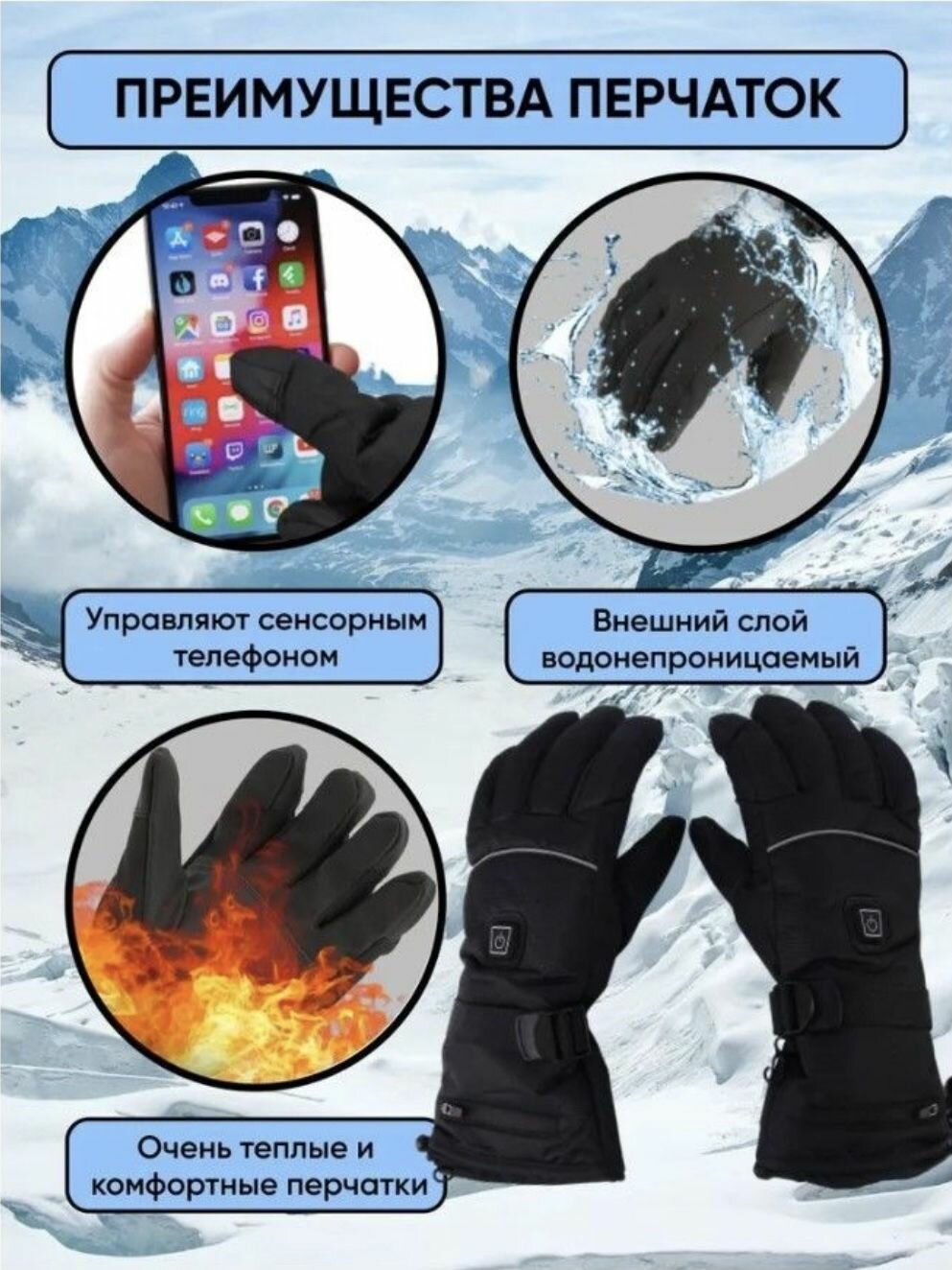 10 цен на Термоперчатки с подогревом. 3 режима. XL.