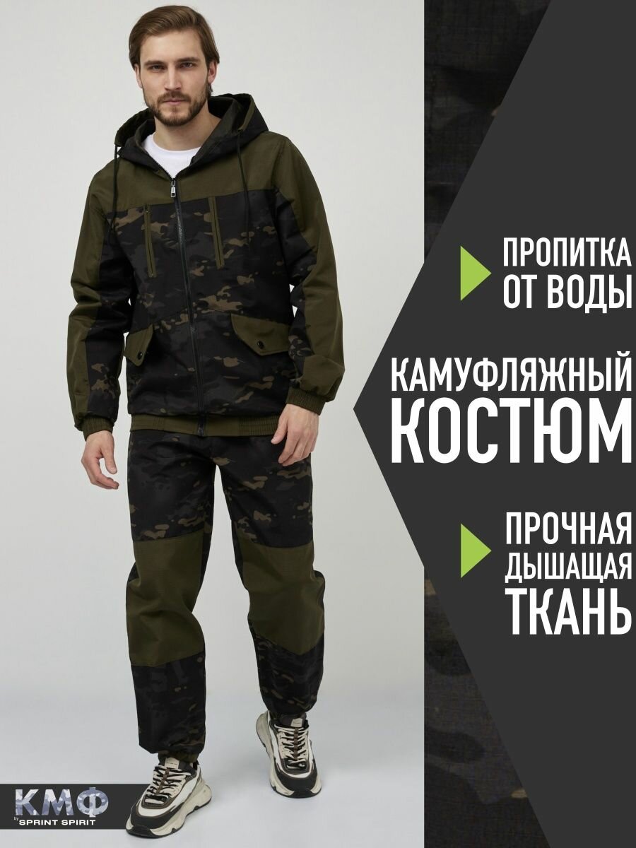 | Дополнительная информация | камуфляжный костюм; рукава: с манжетами; штаны: с манжетами; карманы: на молнии; капюшон: регулируемый; Подробная комплектация: куртка мужская, брюки спортивные |
