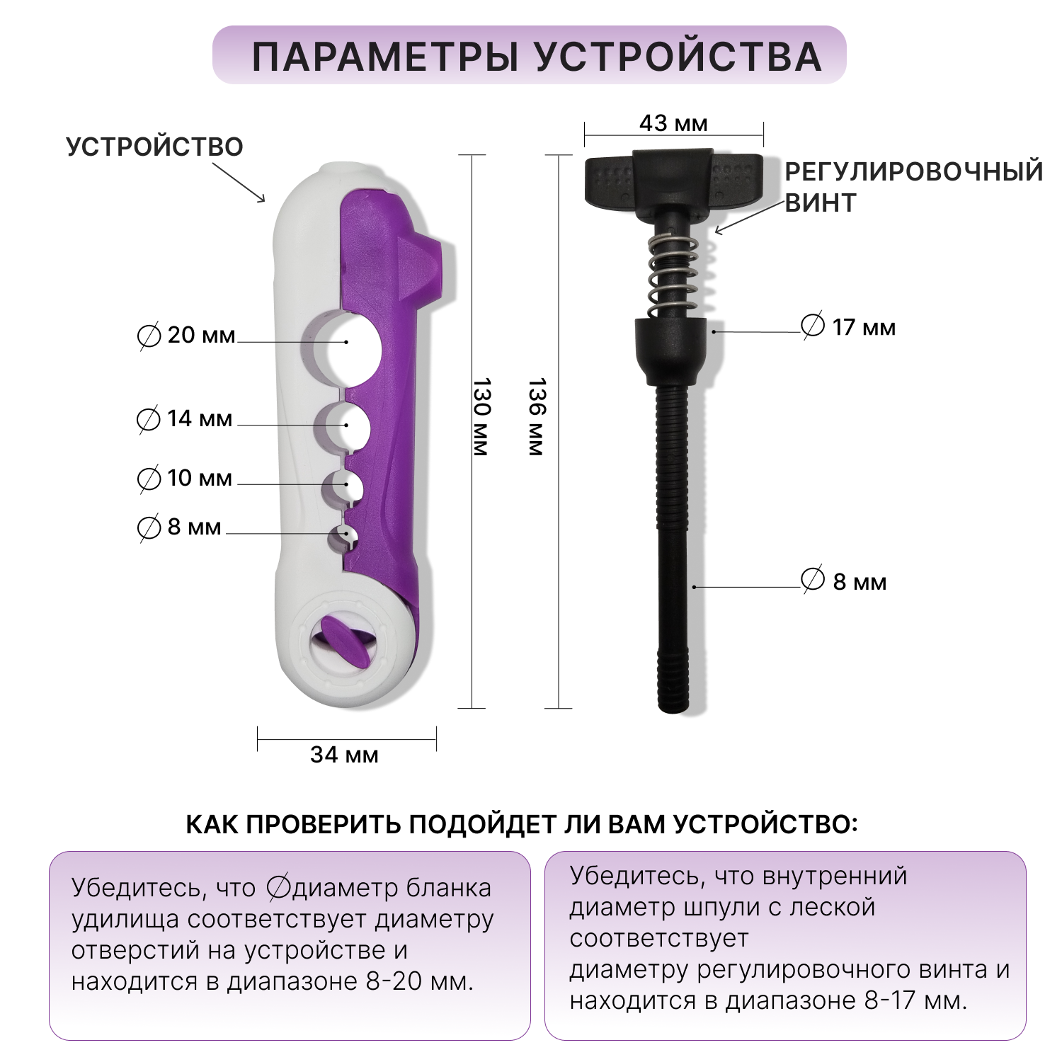 Намотка лески на катушку/ устройство для намотки лески, 16см, фиолетово-белый информация: