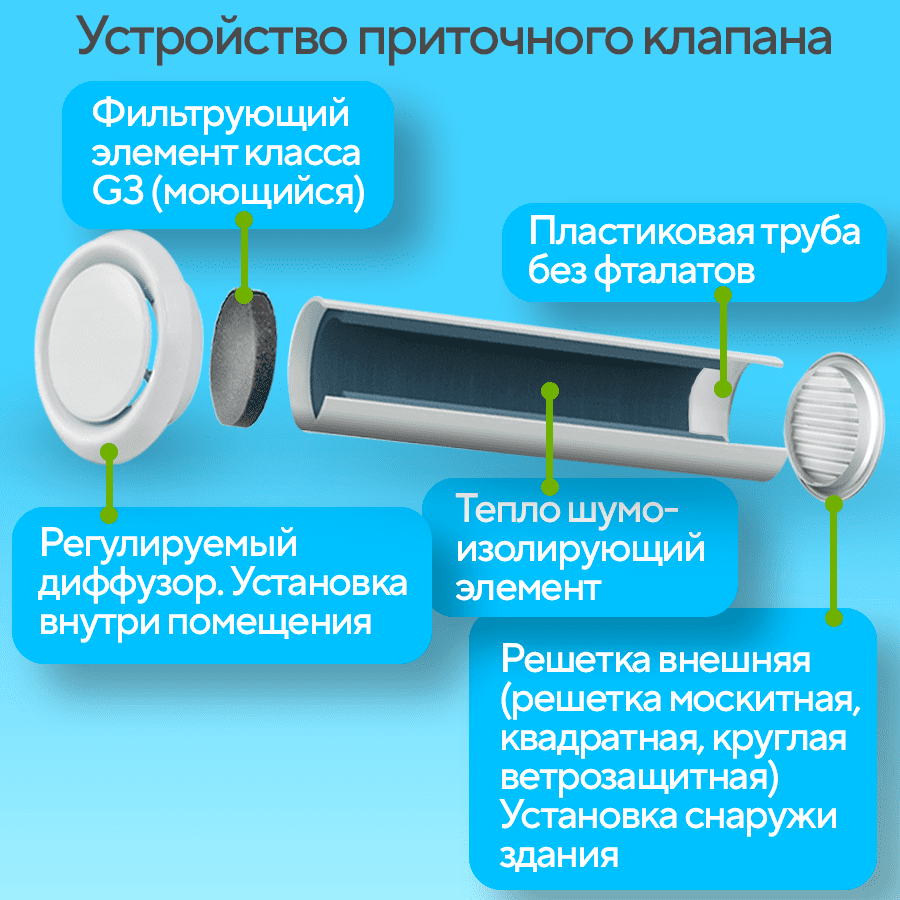 Отзывы на Приточный клапан вентиляционный, КП-1005-01-WW, диаметр 100мм, длина 0,5м