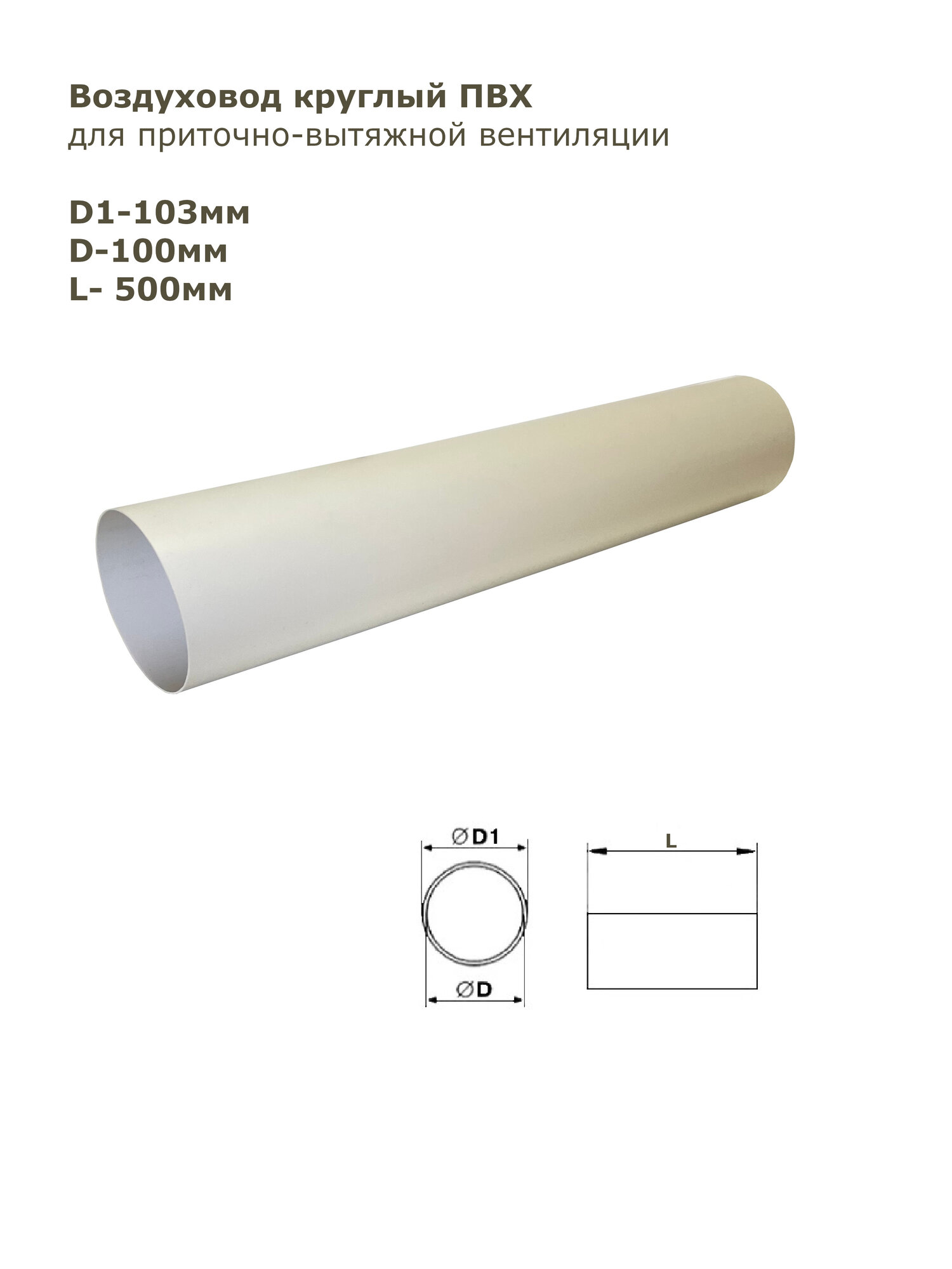 Воздуховод круглый ПВХ D100 мм, L-0,5 м информация: