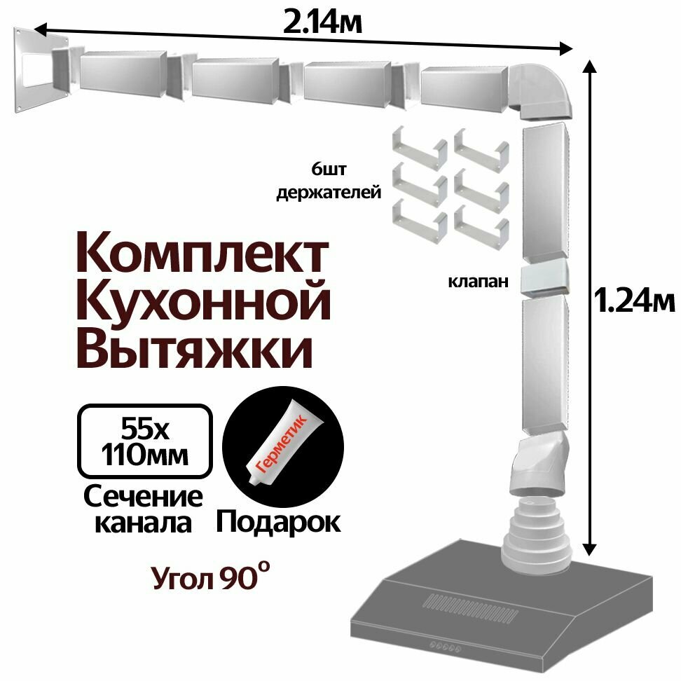 Комплект воздуховодов для кухонной вытяжки из ПВХ 55х110мм, плоские каналы, длинна 3.18м, К5025ПС 5 931 ₽