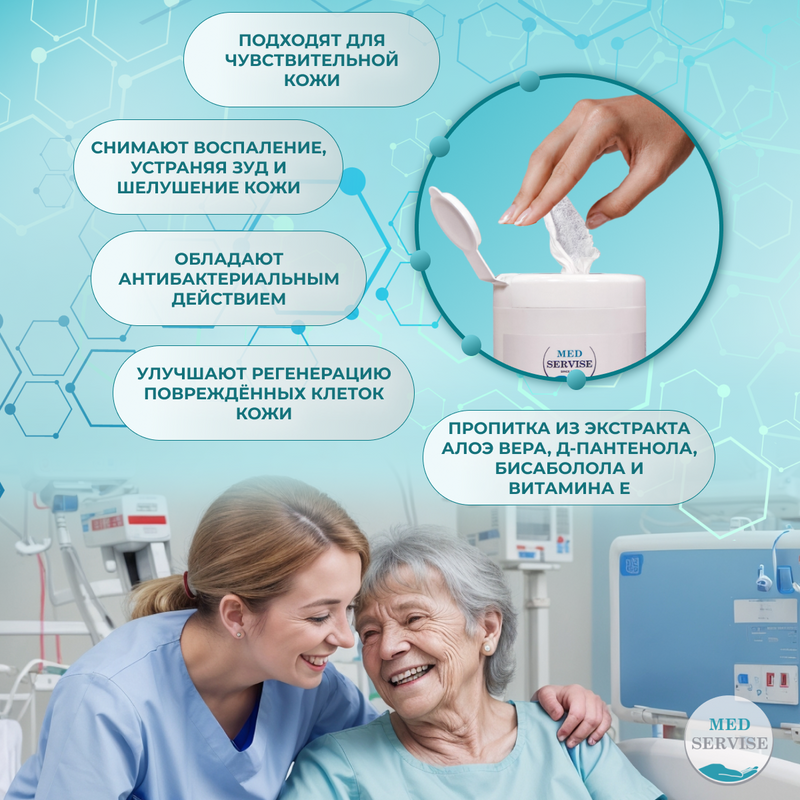 Салфетки влажные очищающие для тела уход за лежачими больными MEDSERVISE - 50 шт информация: