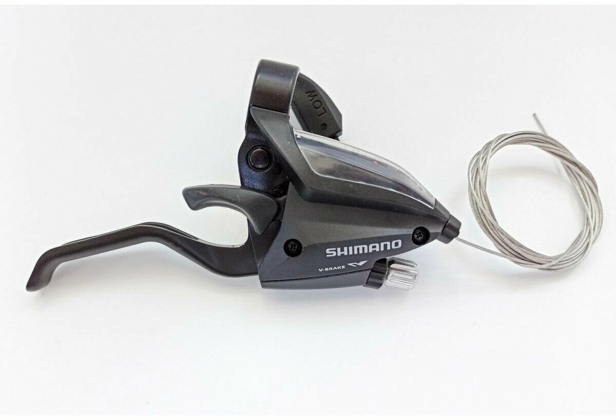 Шифтер с тормозной ручкой левый Shimano Tourney ST-EF500, 3 скорости, трос в комплекте, черный