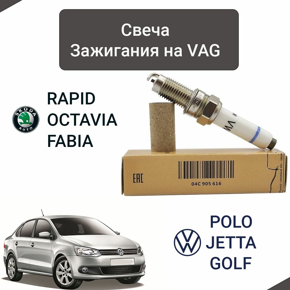 10 цен на Свеча зажигания на Polo Sedan / Caddy / Golf / Jetta / Rapid / Fabia / Octavia / Yeti / 1.6 CWVA CWVB с 2015 года. арт.04C905616