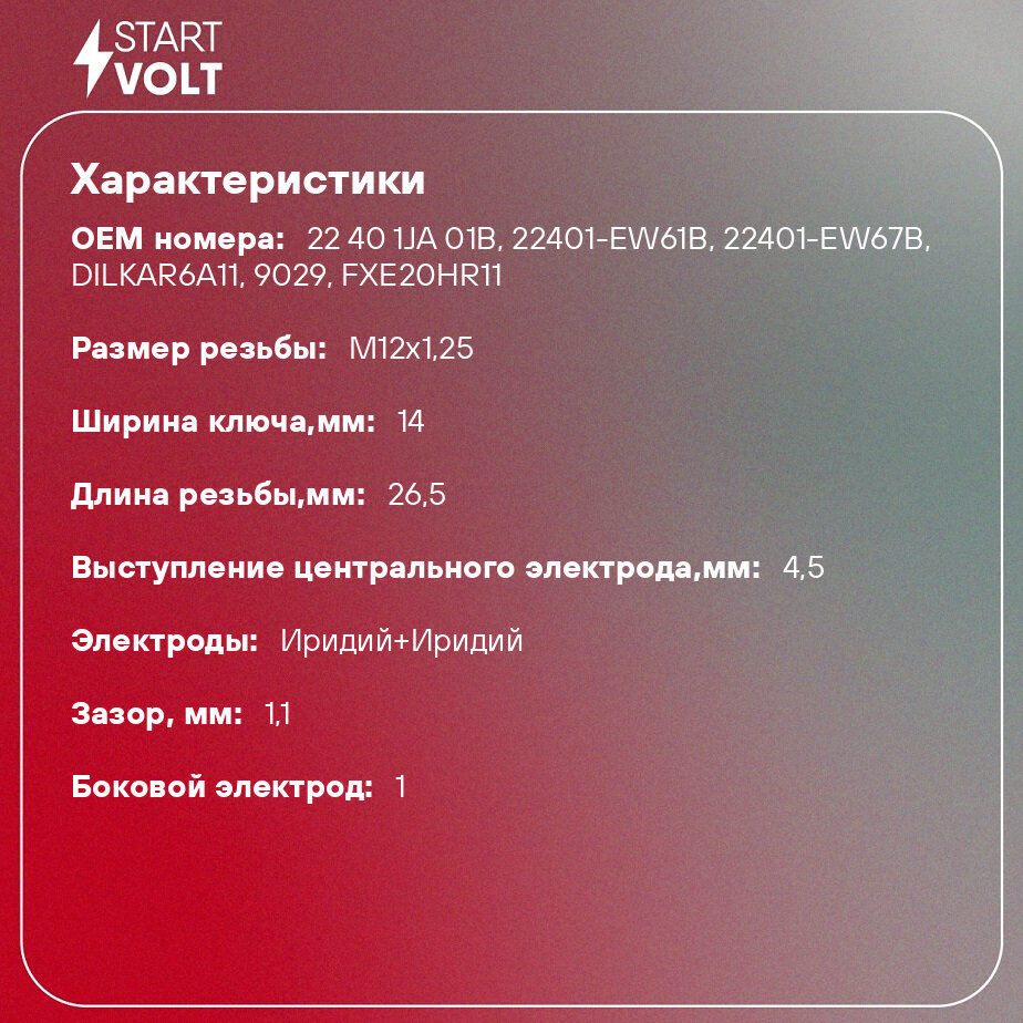 Свеча зажигания для автомобилей Nissan X-Trail T31 (07-)/Renault Koleos (08-) 2.5i VSP 1410 StartVolt информация: