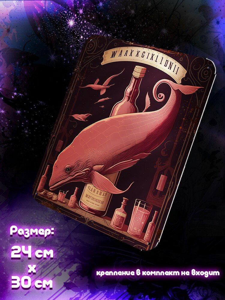 Табличка металлическая вертикальная 24*30 розовый кит - 5053 информация: