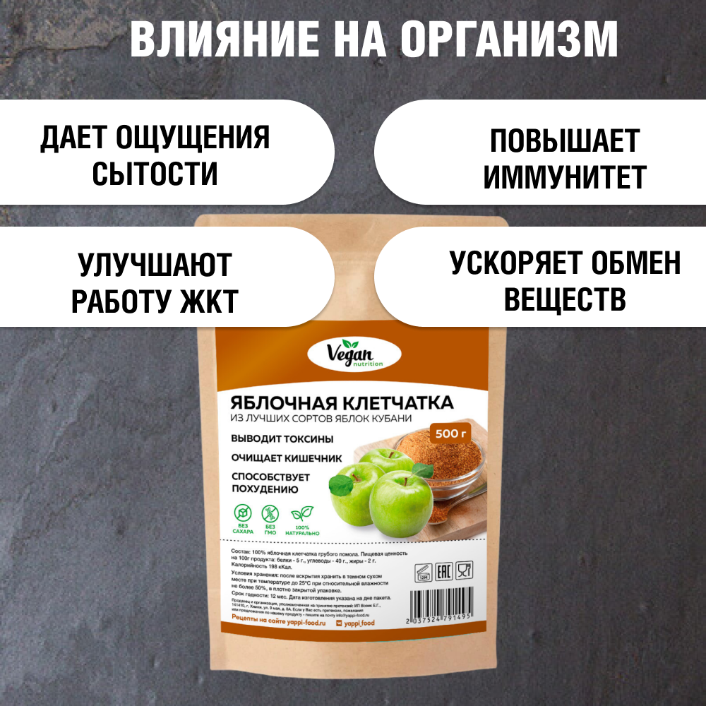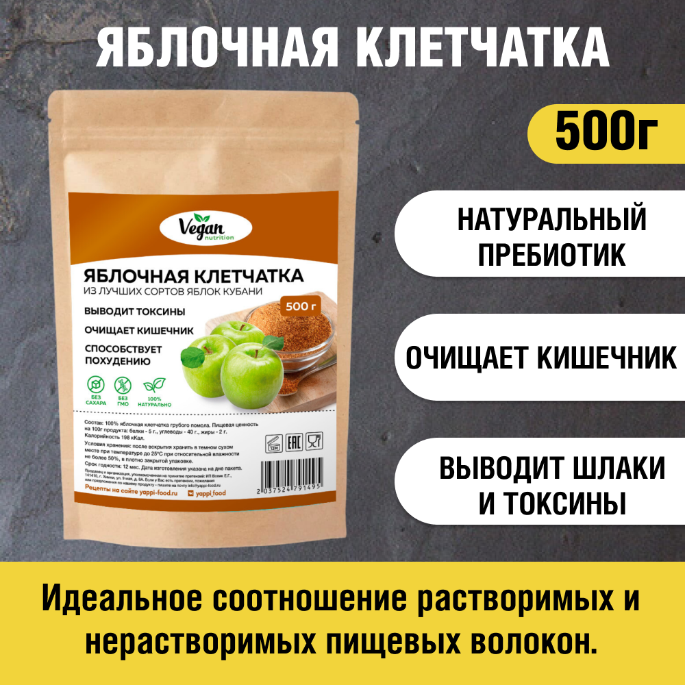 Клетчатка яблочная "Vegan Nutrition" крупного помола для похудения, 500 г информация: