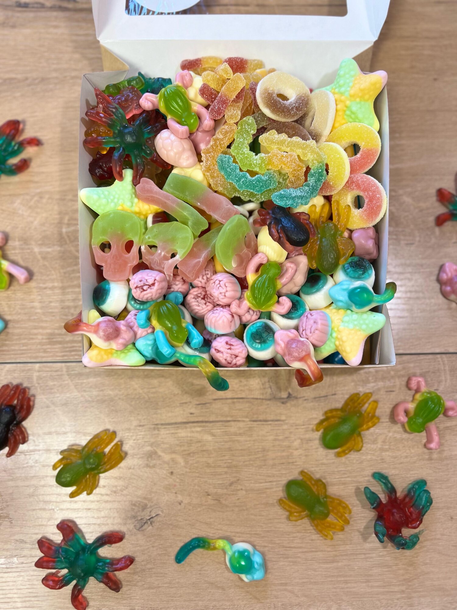| Состав | глюкозно-фруктозный сироп,сахар,желатин,концентрированный яблочный сок,регулятор кислотности,лимонная кислота, агент желирующий: пектины; Ароматизаторы,глазирователь: воск карнаубский;концентрированный сок черной моркови, красители;каротины,куркумин,синий блестящий FCF |