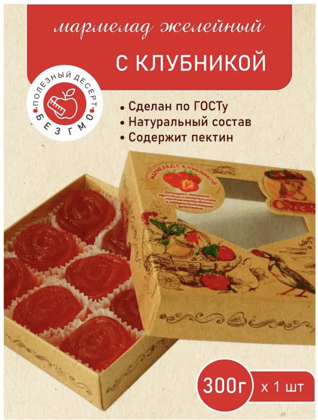 Мармелад желейный ручной работы "Мармеладная сказка" с клубникой 300 гр информация: