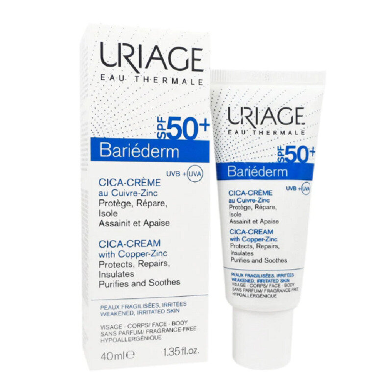 10 цен на URIAGE, Bariederm Цика-крем с медью и цинком SPF50+, для поврежденной и раздраженной кожи / Заживляющее восстанавливающее средство для детей и взрослых, 40 мл