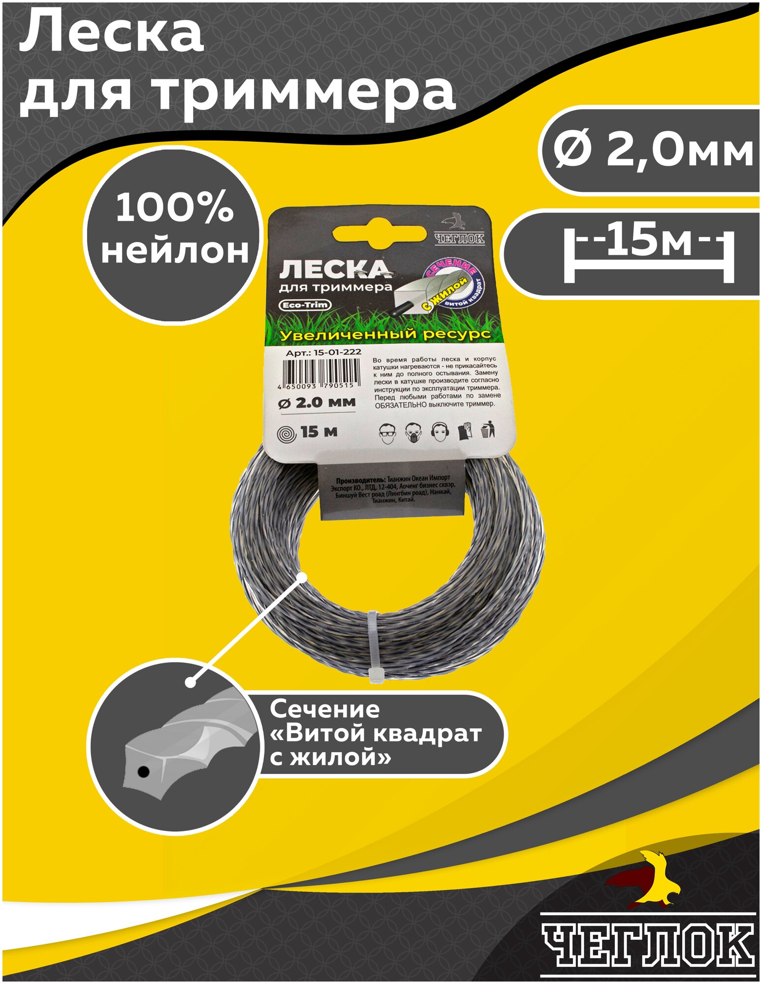 Леска чеглок витой квадрат с жилой 2 х15 /арт 15-01-222/ информация: