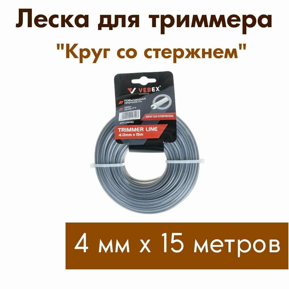 Леска для триммера VEBEX (звезда) 4 мм длина 15м