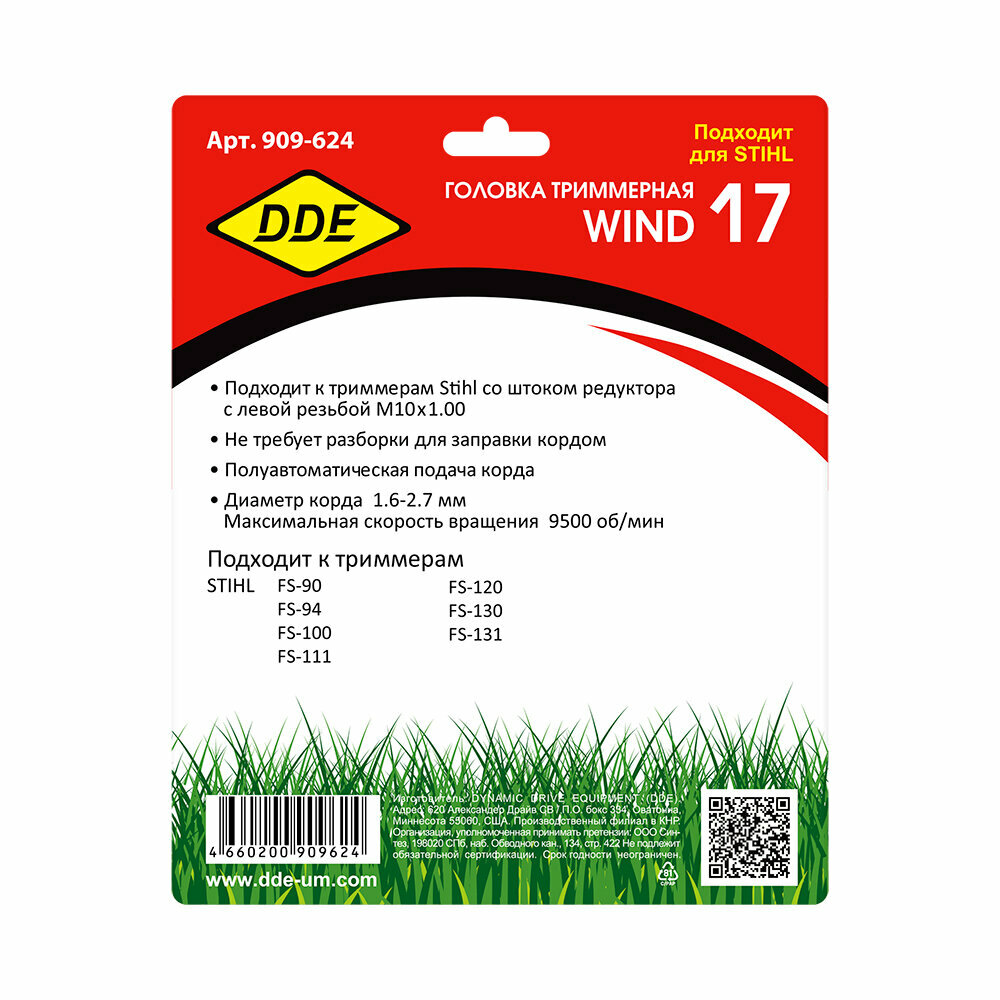 | Подробная комплектация | Головка триммерная DDE Wind 17 Autoсut 26-2 |