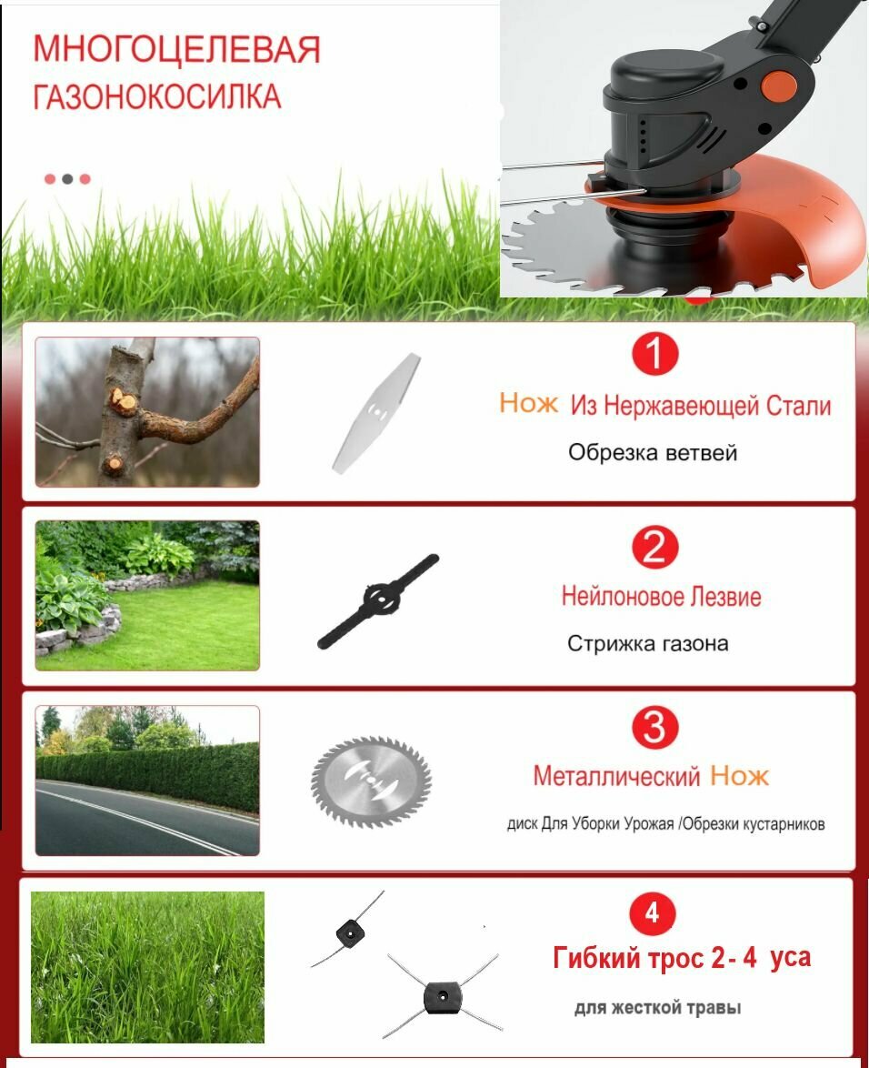 | Подробная комплектация | 4 шт. -леска -насадка для триммера универсальная |