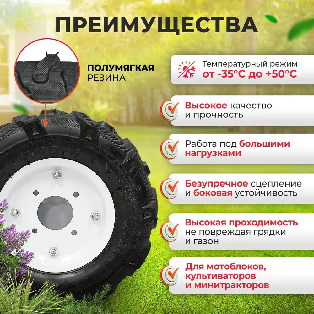 Отзывы на Колесо для мотоблока пневматическое 4.00-8 варяг (4 отверстия)