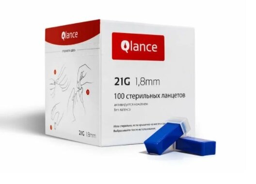 Ланцет Qlance Универсал 1.8 мм для капиляр. забор крови №100 (синий) игла 21G 100 шт в уп