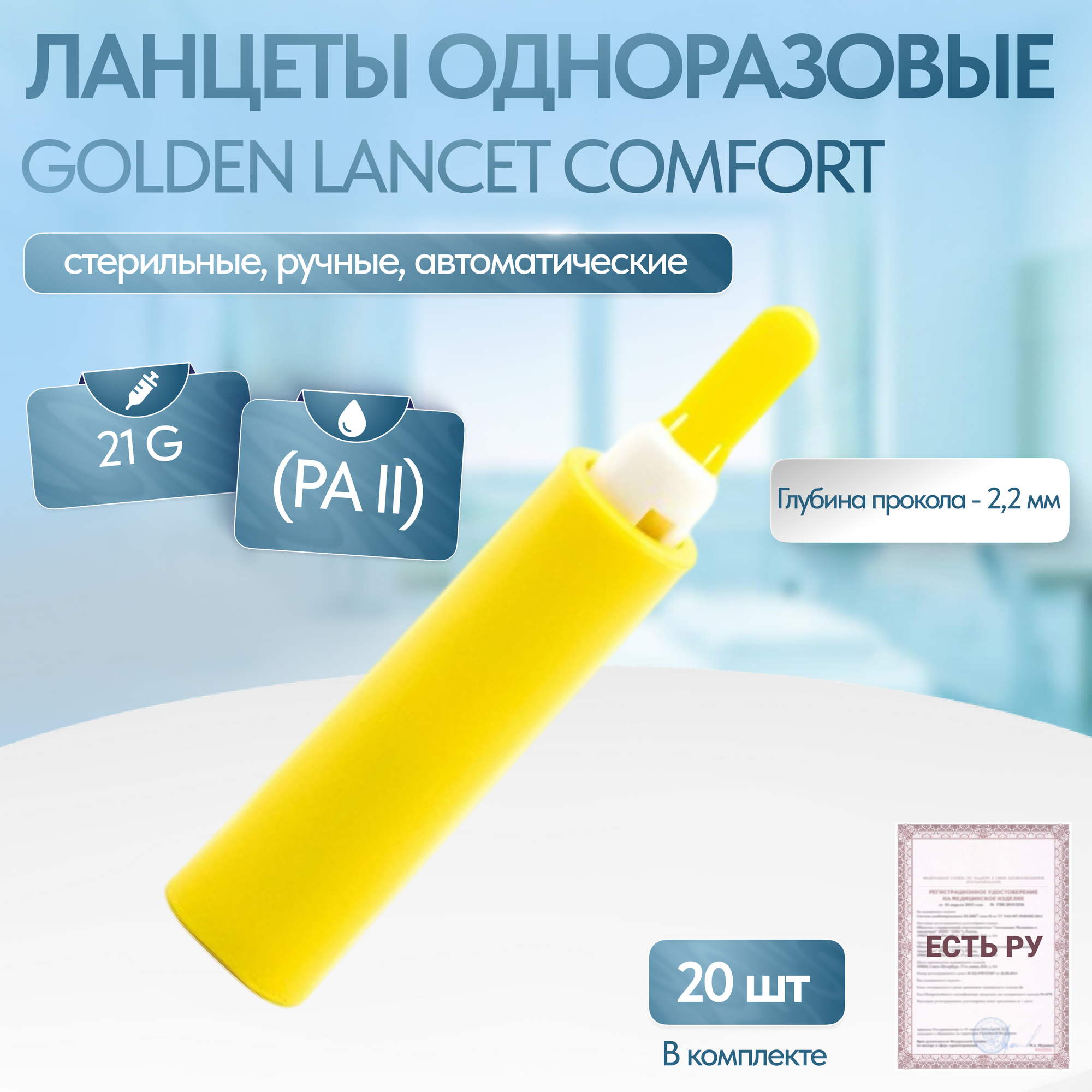 Ланцеты одноразовые Golden Lancet Comfort (PA II), 21 G, 20 шт информация:
