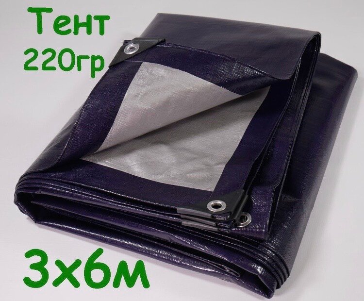 10 цен на Тент 3х6 м с люверсами плотность 220г/м2 строительный, универсальный, защитный, укрывной