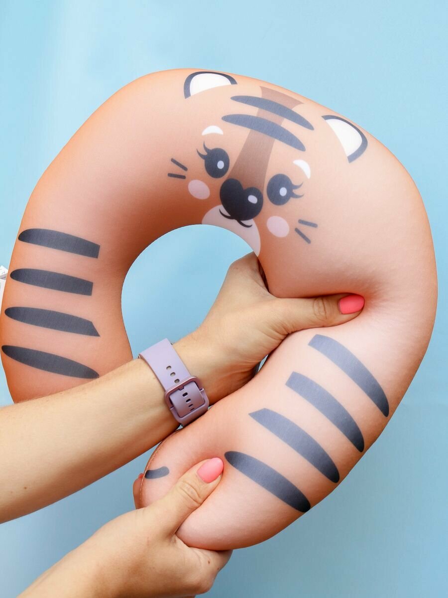 10 цен на Подушка антистресс дорожная для шеи, подголовник для путешествий "Тигр"
