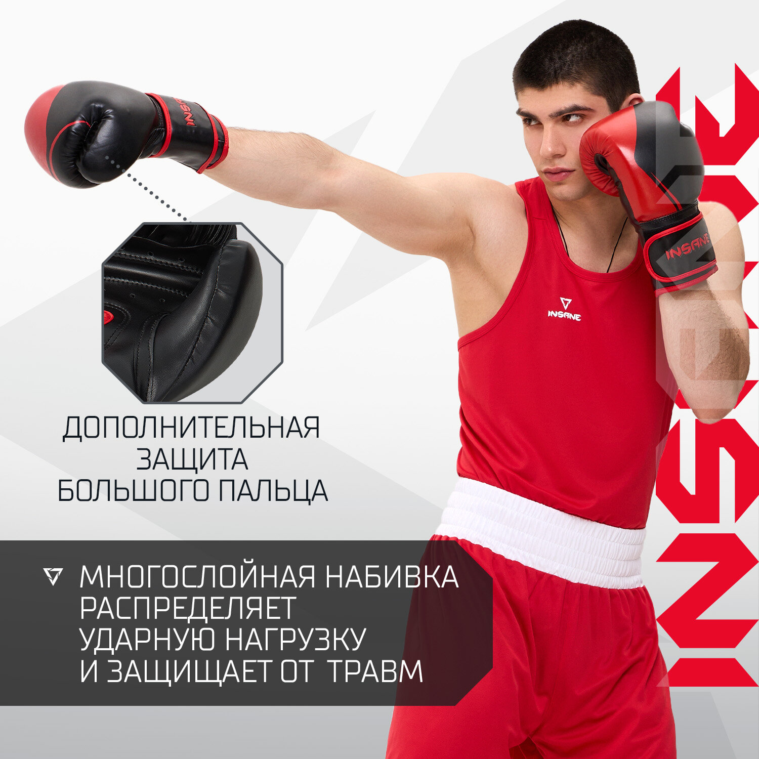 Перчатки боксерские INSANE MARS IN22-BG100, ПУ, красный, 12 oz 1 902 ₽