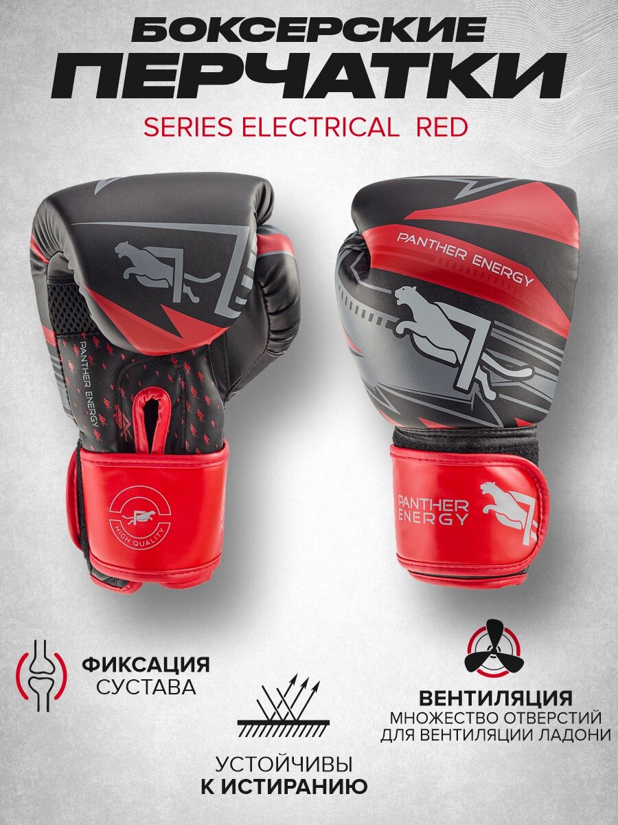 Боксерские перчатки Panther Energy Lighting Red, искусственная кожа, черно-красные, 8 унций 2 280 ₽