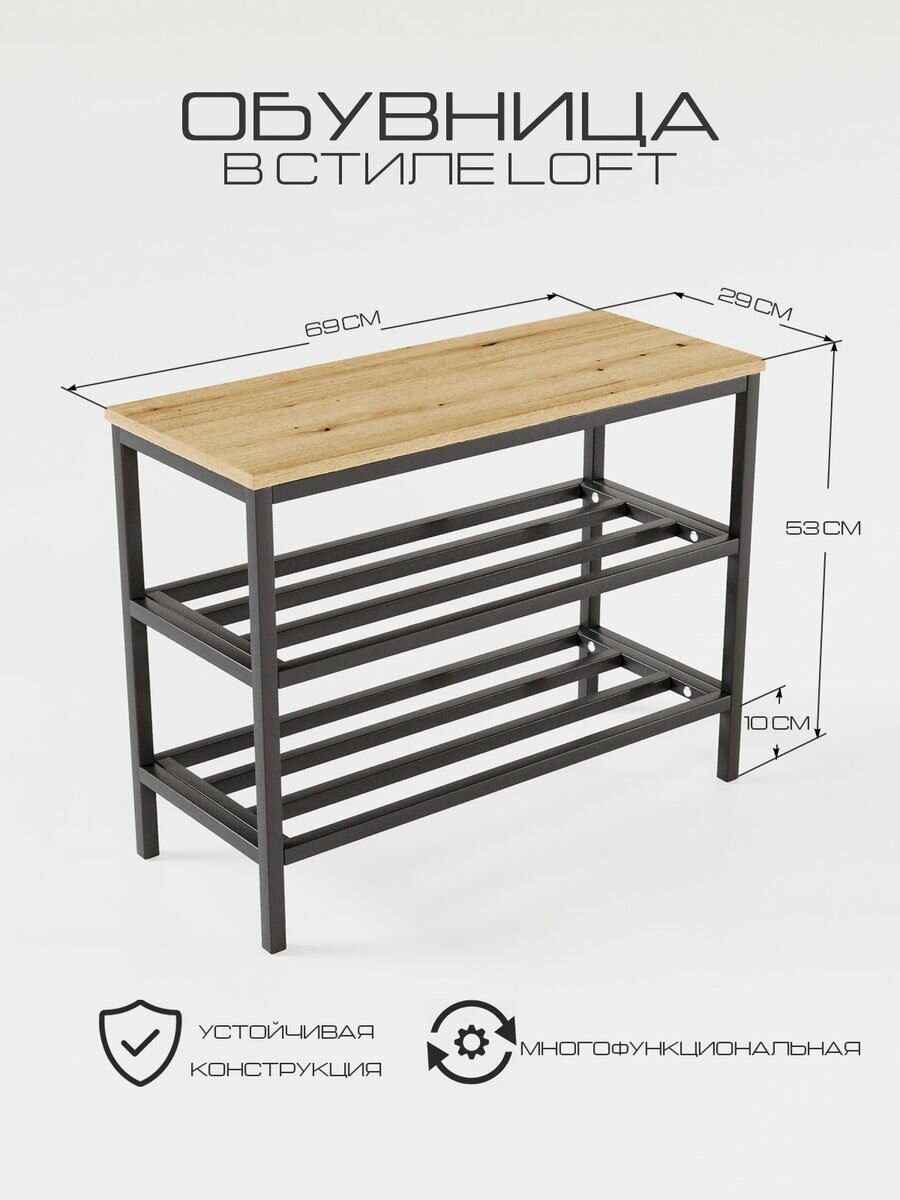 10 цен на Обувница "IamLoft", металл, ЛДСП, ясень светлый, с сиденьем, высота 53, ширина 69, глубина 29