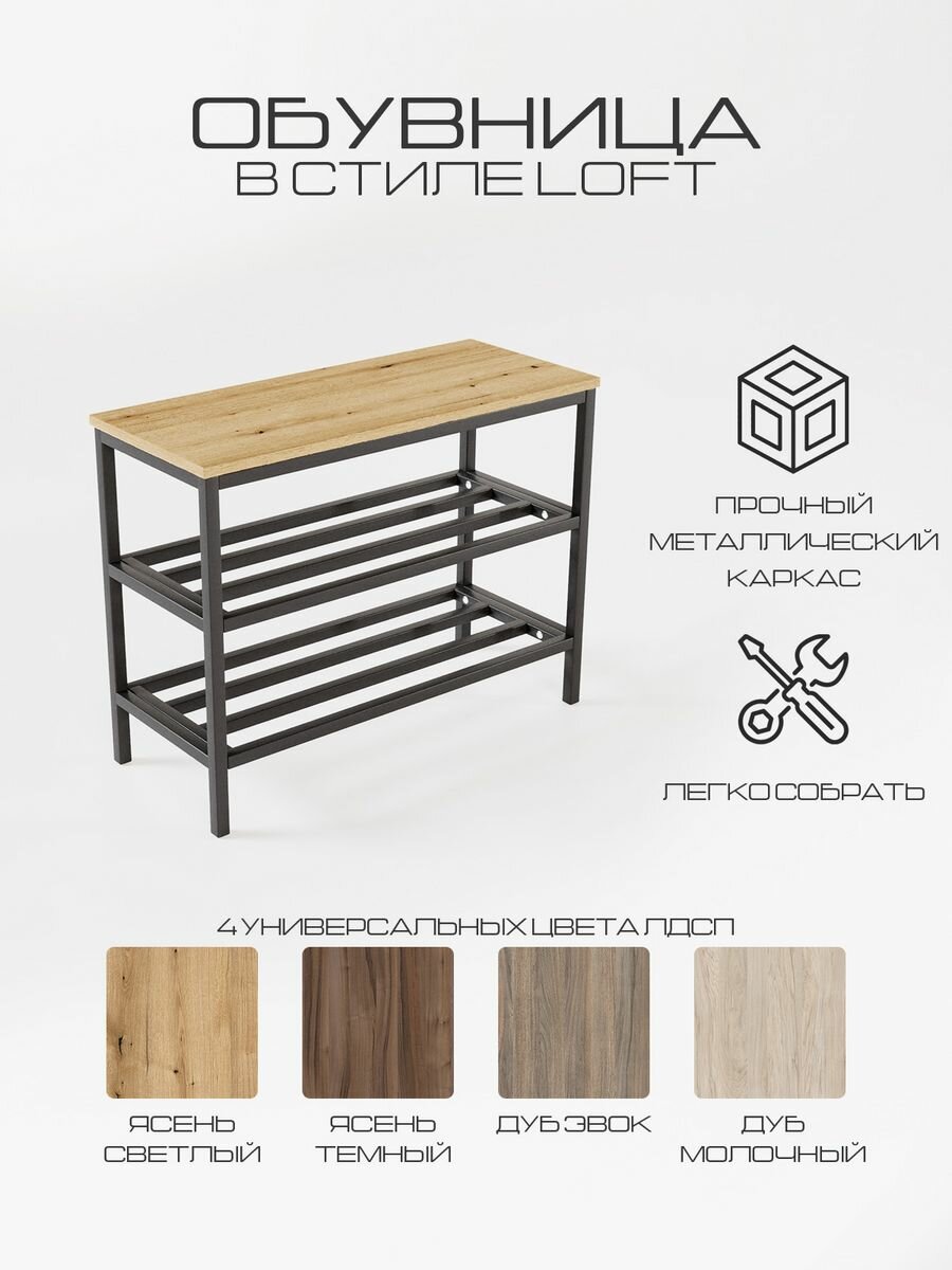 Отзывы на Обувница "IamLoft", металл, ЛДСП, ясень светлый, с сиденьем, высота 53, ширина 69, глубина 29