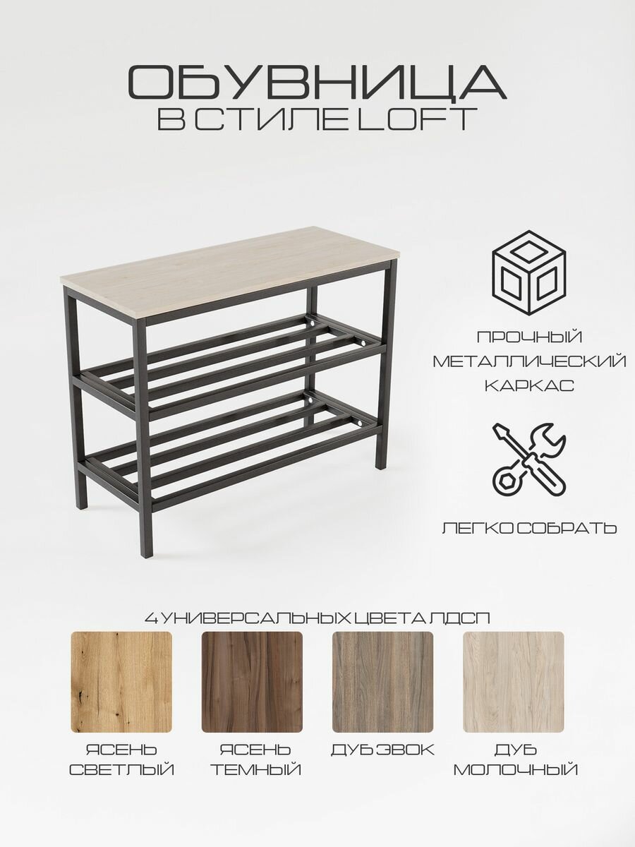 Обувница "IamLoft", металл, ЛДСП, дуб молочный, с сиденьем, высота 53, ширина 69, глубина 29 информация: