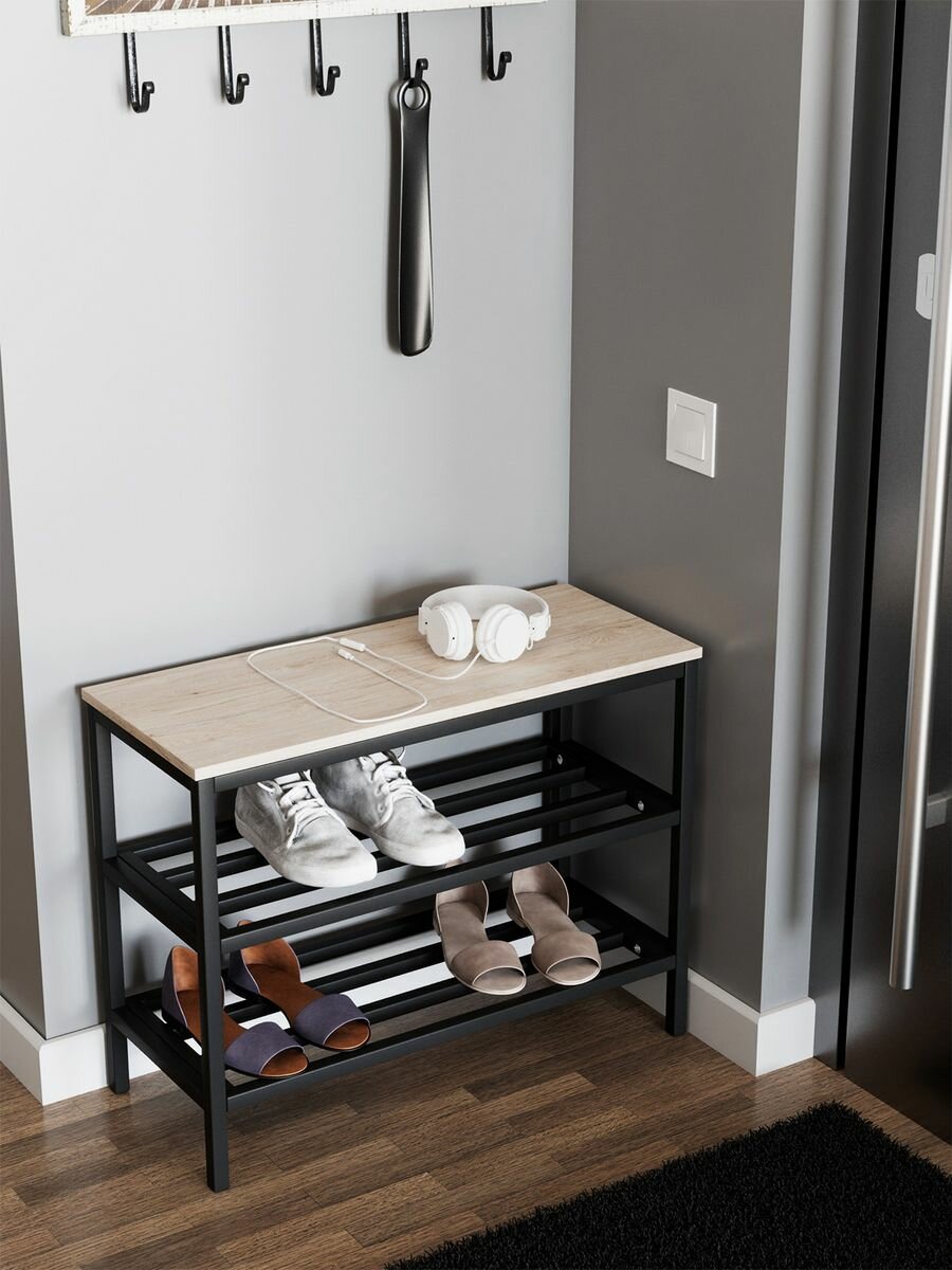Отзывы на Обувница "IamLoft", металл, ЛДСП, дуб молочный, с сиденьем, высота 53, ширина 69, глубина 29