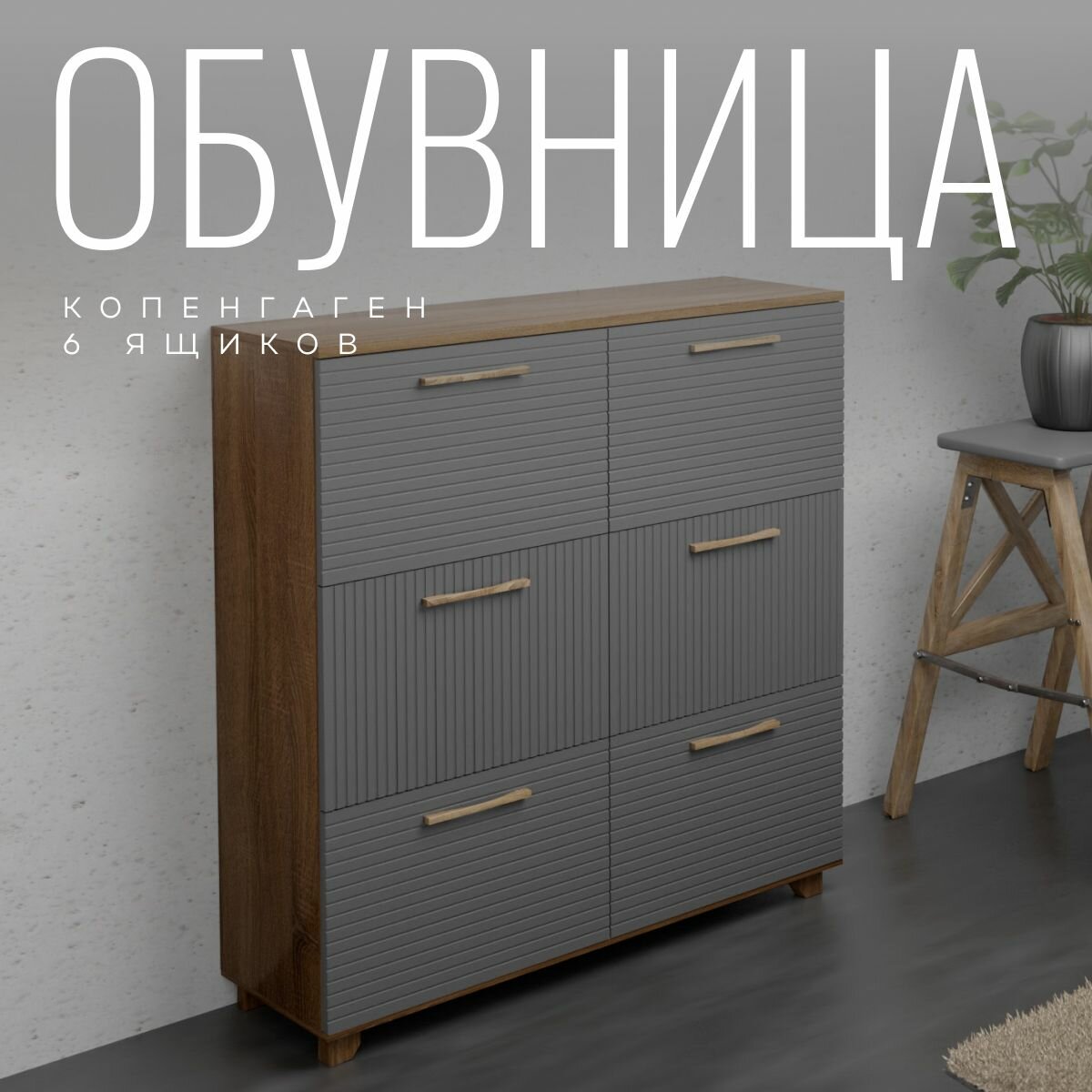 10 цен на Обувница Копенгаген 6 ящиков ЛДСП Дуб самдал / МДФ Серый графит 100х30х95