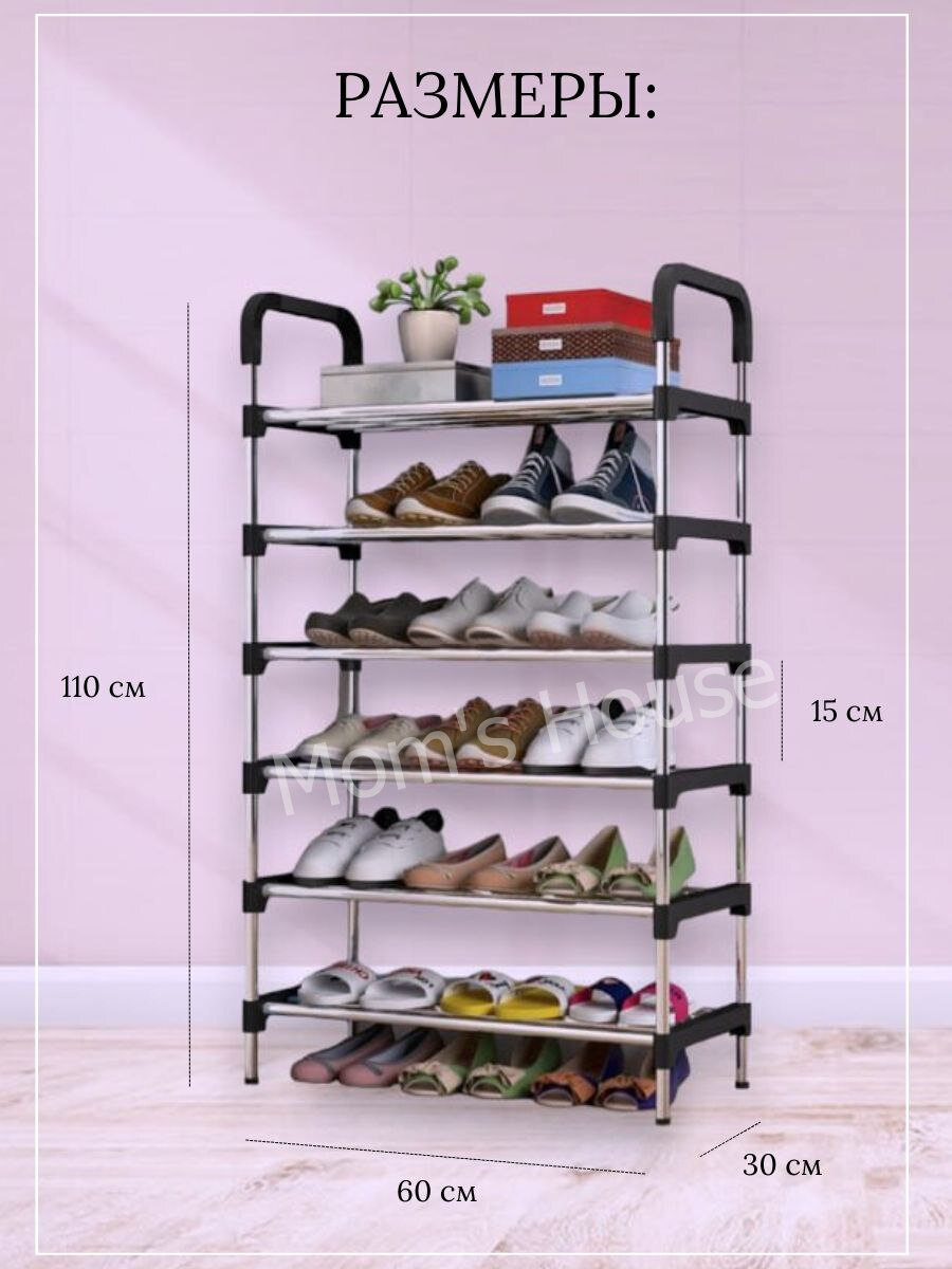 Отзывы на Обувница в прихожую металлическая открытая, Этажерка для обуви в прихожую, Полка для обуви, Стеллаж 6 ярусов