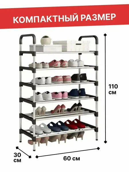 10 цен на Обувница 6 ярусов 60х30х110см / ПП + нержавеющая сталь