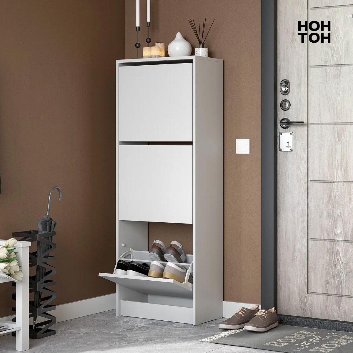 10 цен на Обувница Нонтон Бис-3 белый текстурный 49х28х135 см