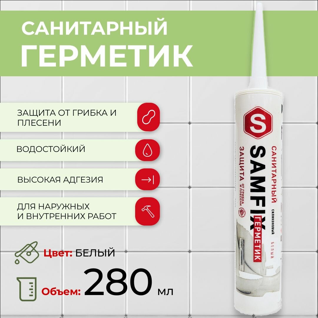 Отзывы на Герметик силиконовый санитарный белый для ванной 280 мл 325 гр SAMGRUPP