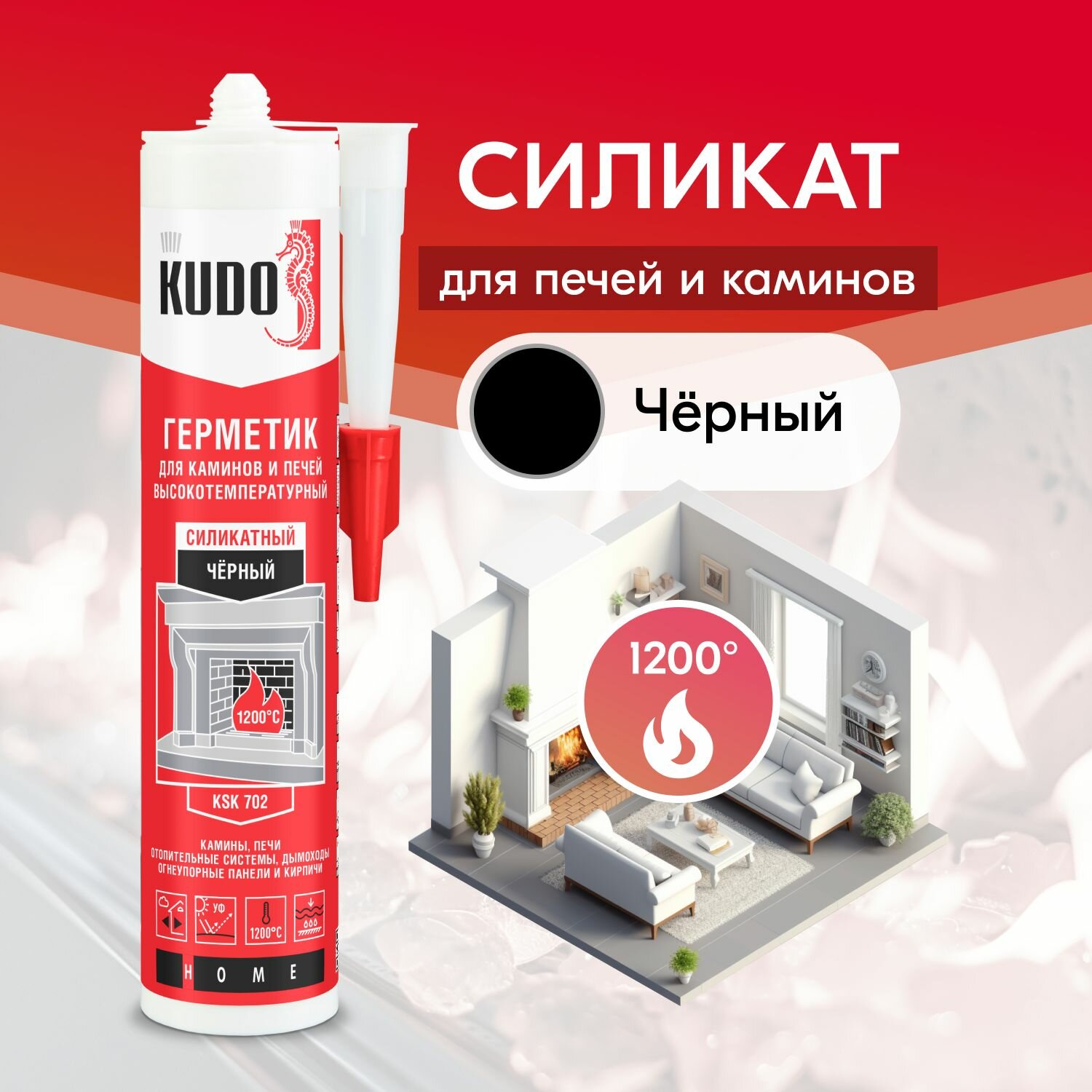 Герметик для печей и каминов высокотемпературный KUDO "KSK 702" силикатный, чёрный 329 ₽