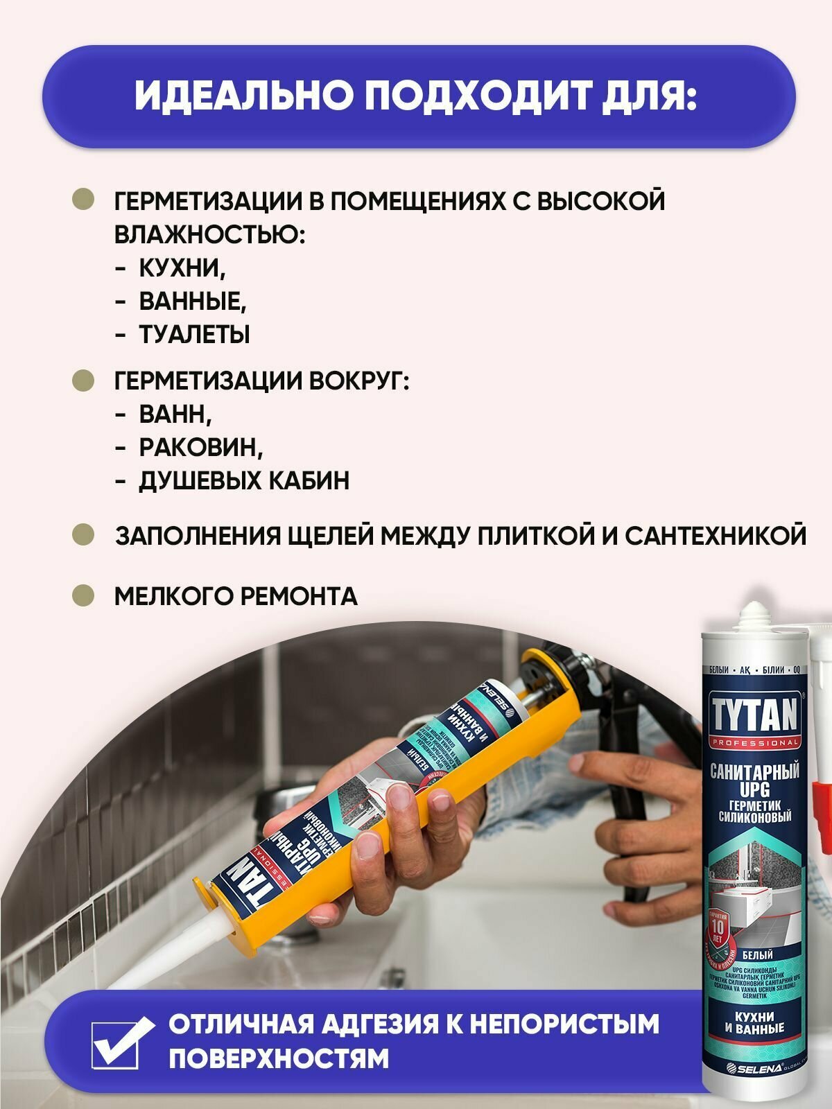 Отзывы на Герметик силиконовый санитарный Tytan Professional UPG белый 280 мл