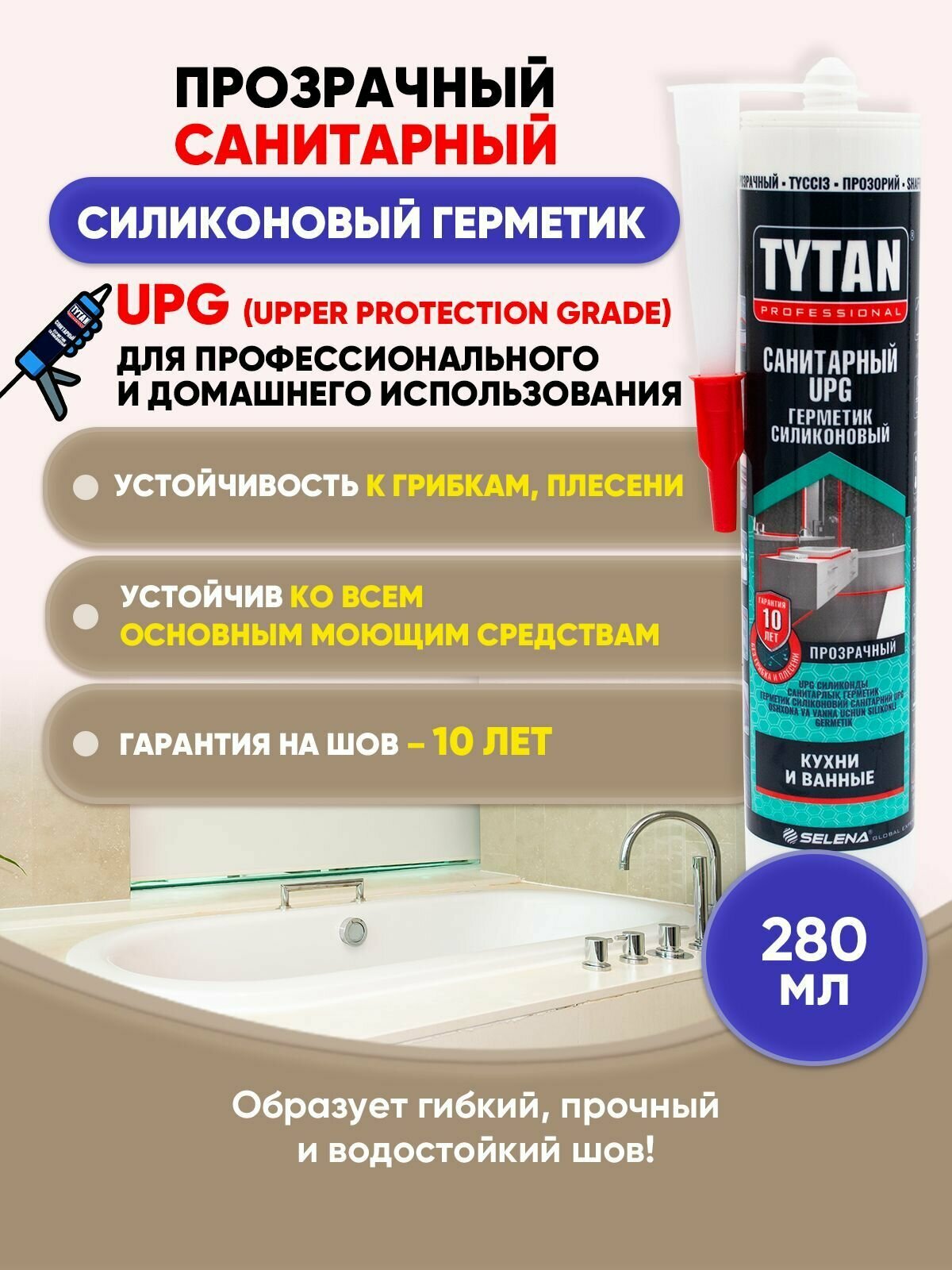 Герметик силиконовый санитарный UPG Tytan Professional, 280 мл, прозрачный информация: