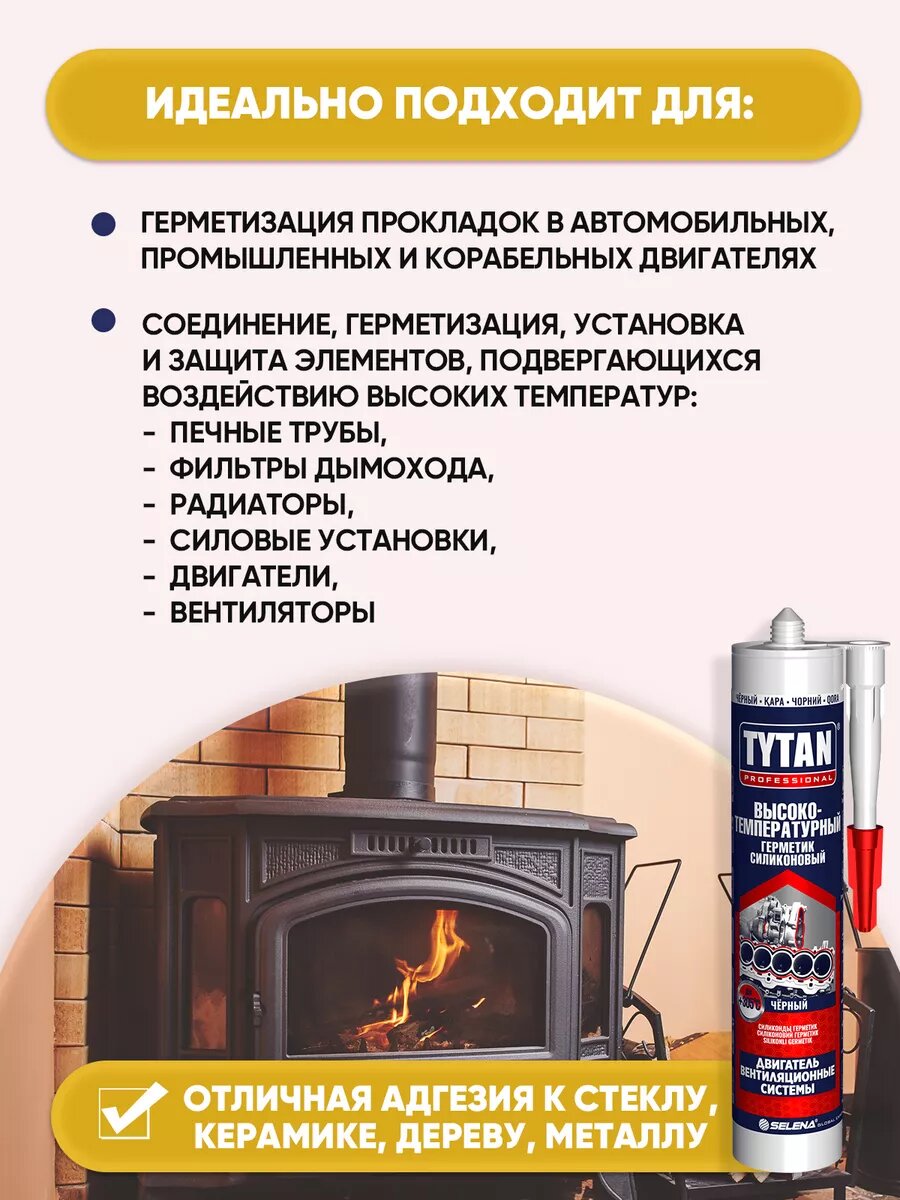 Герметик силикатный для каминов Tytan Professional, 280 мл, черный