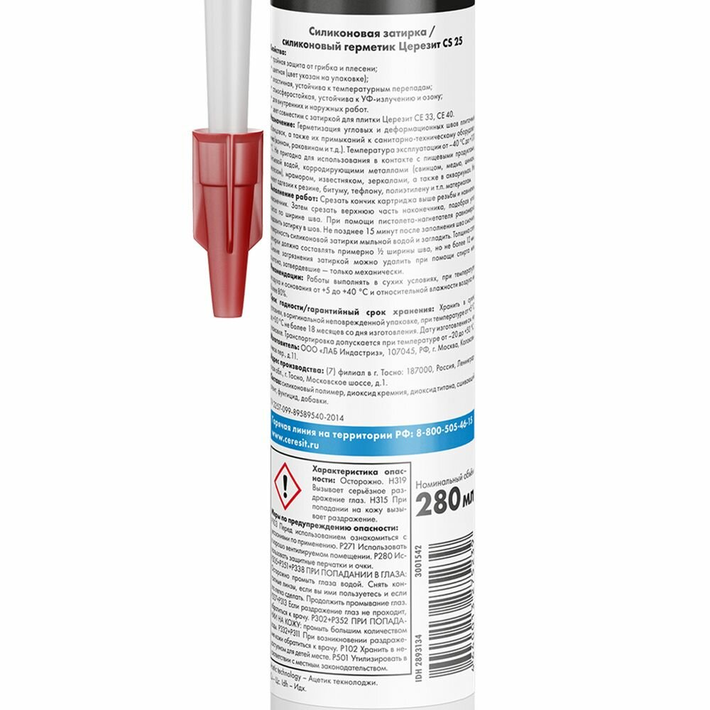 Силиконовая затирка-герметик Церезит CS 25, цвет Светло-серый, 280 мл 1 095 ₽